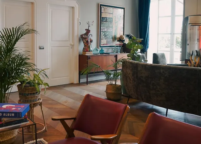 Os arredores convidativos incluem cafés e restaurantes nas proximidades.